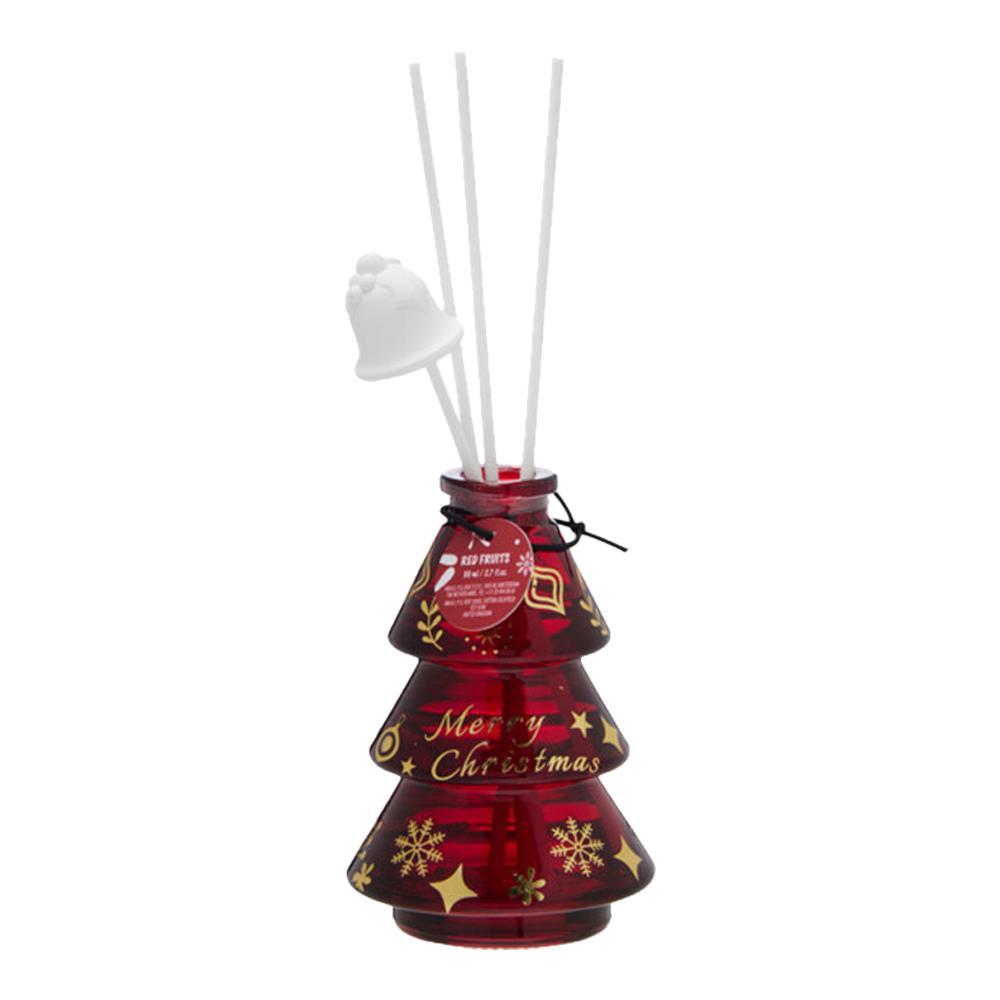 Αρωματικό χώρου σε γυάλινο μπουκάλι σε σχήμα δέντρου με χρυσές λεπτομέρειες και 4 ξυλάκια διάχυσης. Διαθέτει άρωμα χριστουγεννιάτικου δέντρου, που γεμίζει τον χώρο με φρεσκάδα των κόκκινων φρούτων και γιορτινή ατμόσφαιρα.