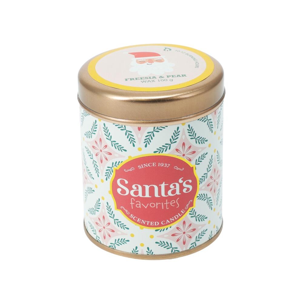Αρωματικό κερί σε χρυσό μεταλλικό κουτί με θέμα "Santa’s Favorites", που γεμίζει τον χώρο με γιορτινή ατμόσφαιρα και ζεστή μυρωδιά. Κατασκευασμένο από παραφίνη, σε πρακτικό κουτί που διατηρεί το άρωμα αναλλοίωτο και μπορεί να επαναχρησιμοποιηθεί ως διακοσμητικό. Ιδανικό για τη χριστουγεννιάτικη διακόσμηση, αλλά και ως μικρό δώρο για τις γιορτές.