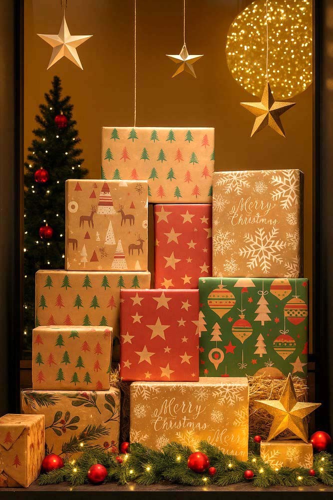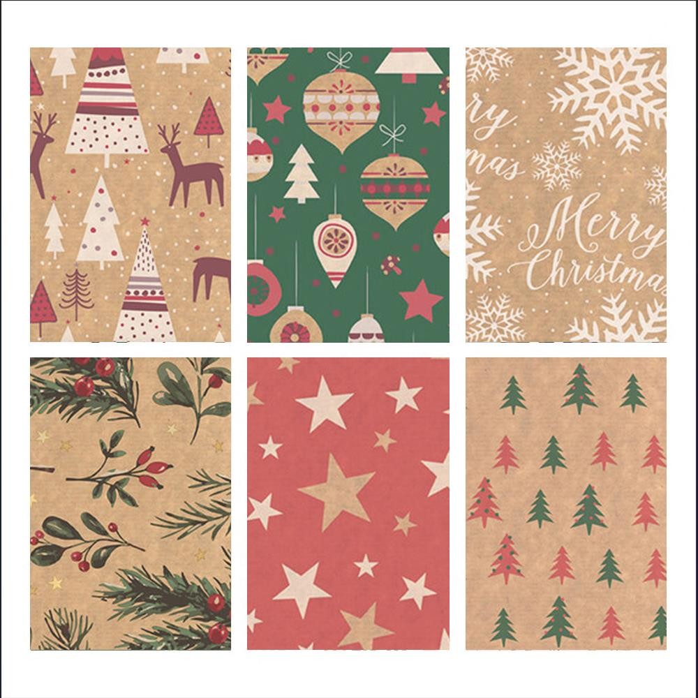 Σετ χριστουγεννιάτικων χαρτιών περιτυλίγματος σε φυσική craft απόχρωση με 6 διαφορετικά σχέδια. Περιλαμβάνει παραδοσιακά μοτίβα όπως έλατα, ταράνδους, αστέρια και στολίδια σε κόκκινους και πράσινους τόνους. Το ανθεκτικό του χαρτί και η φυσική του υφή προσφέρουν οικολογική και κομψή εμφάνιση σε κάθε δώρο. ✅ Υλικό: Χαρτί
