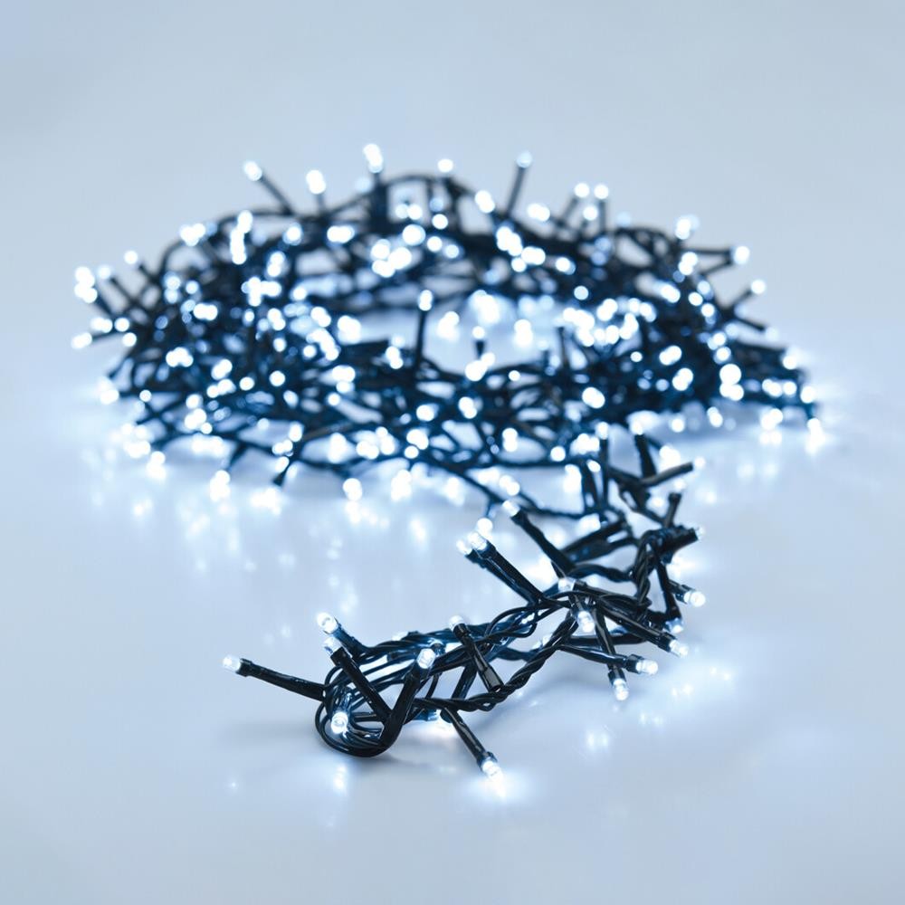 Σετ χριστουγεννιάτικων φωτιστικών με 1000 λευκά LED σε πράσινο καλώδιο, συνολικού μήκους 20 μέτρων. Με απόσταση 2 εκ. ανά λαμπάκι, δημιουργούν πυκνό και εντυπωσιακό φωτισμό για το δέντρο ή τον χώρο σας. Διαθέτουν 8 λειτουργίες με μνήμη, χρονοδιακόπτη 8/16 ωρών και καλώδιο τροφοδοσίας 3 μέτρων. Κατάλληλα για χρήση τόσο σε εσωτερικούς όσο και σε εξωτερικούς χώρους (IP44).