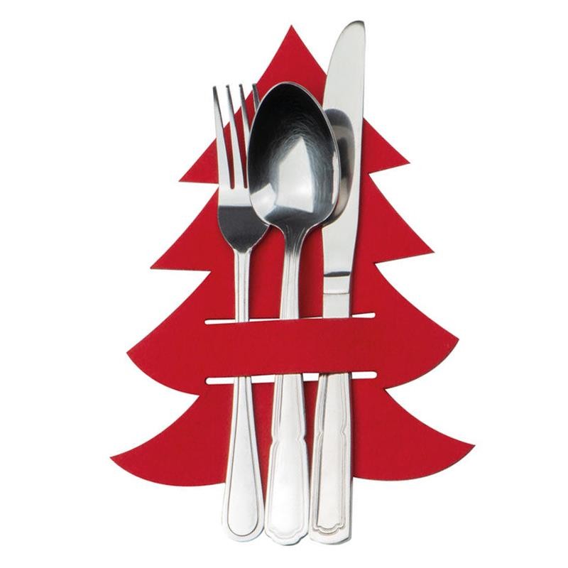 Χριστουγεννιάτικη θήκη μαχαιροπίρουνων σε πρωτότυπο σχήμα δέντρου. Προσφέρει εντυπωσιακή και γιορτινή παρουσία στο τραπέζι, προσθέτοντας χρώμα και στυλ στο σερβίρισμα. Ιδανική για εστιατόρια, ξενοδοχεία ή χριστουγεννιάτικες εκδηλώσεις στο σπίτι. Υλικό: fleece Διαστάσεις: 21,5×17εκ.