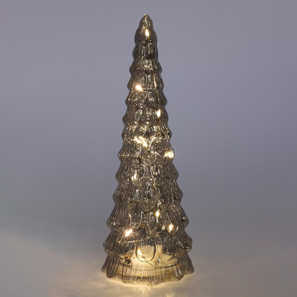 Αυτό το χριστουγεννιάτικο δέντρο από γυαλί σε πράσινο χρώμα προσθέτει μια κομψή και λαμπερή πινελιά στη χριστουγεννιάτικη διακόσμηση σας. Είναι ιδανικό για τοποθέτηση σε τραπέζια, ράφια ή άλλους μικρούς χώρους. Το φωτιζόμενο εφέ του προσφέρει ζεστή και γιορτινή ατμόσφαιρα, καθιστώντας το τέλειο συμπλήρωμα για τις γιορτές. Το καλώδιο με τα LED λειτουργεί με 2 μπαταρίες ΑΑΑ (δε συμπεριλαμβάνονται). Υλικό: γυαλί, Διαστάσεις: Υ24x∅9,5εκ.