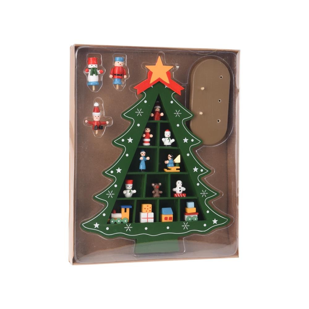 Ξύλινο χριστουγεννιάτικο δέντρο ύψους 30,5εκ. Το σετ περιλαμβάνει μικρά κρεμαστά διακοσμητικά-φιγούρες που αναδεικνύουν τη γιορτινή ατμόσφαιρα και χαρίζουν μοναδική πινελιά στη διακόσμηση. Ιδανικό για τραπέζι, ράφι ή για δώρο.
