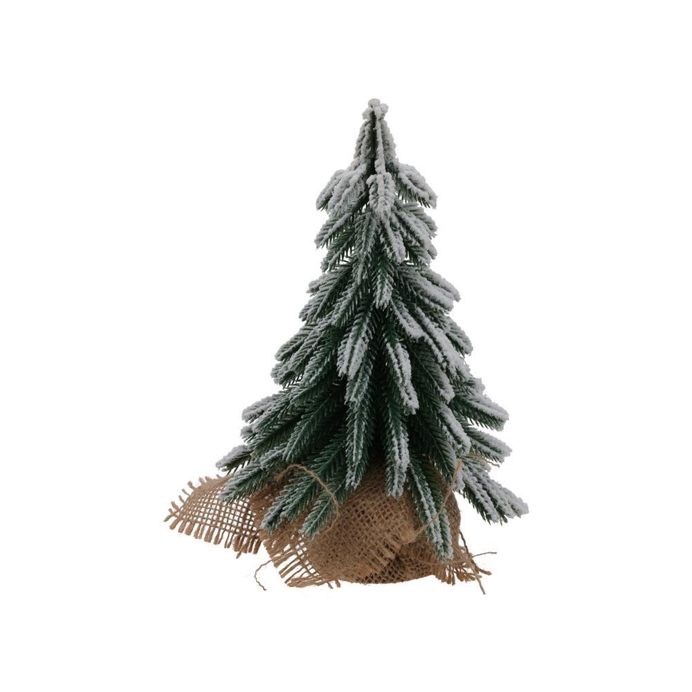 Χριστουγεννιάτικο δέντρο ύψους 20εκ., κατασκευασμένο από polyester με πράσινο χρώμα και χιονισμένο εφέ για χειμωνιάτικη ατμόσφαιρα. Η βάση του είναι από ξύλο πεύκου και τυλιγμένη με λινάτσα και βαμβάκι, δίνοντας φυσική και ζεστή όψη. Ιδανικό για τραπέζια, ράφια και μικρούς χώρους που χρειάζονται γιορτινή διακόσμηση.