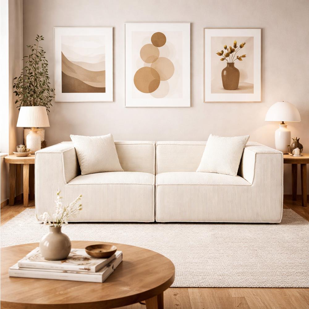 Compressed Nextdeco καναπές διθέσιος κοτλέ ιβουάρ Υ63x208x101εκ.