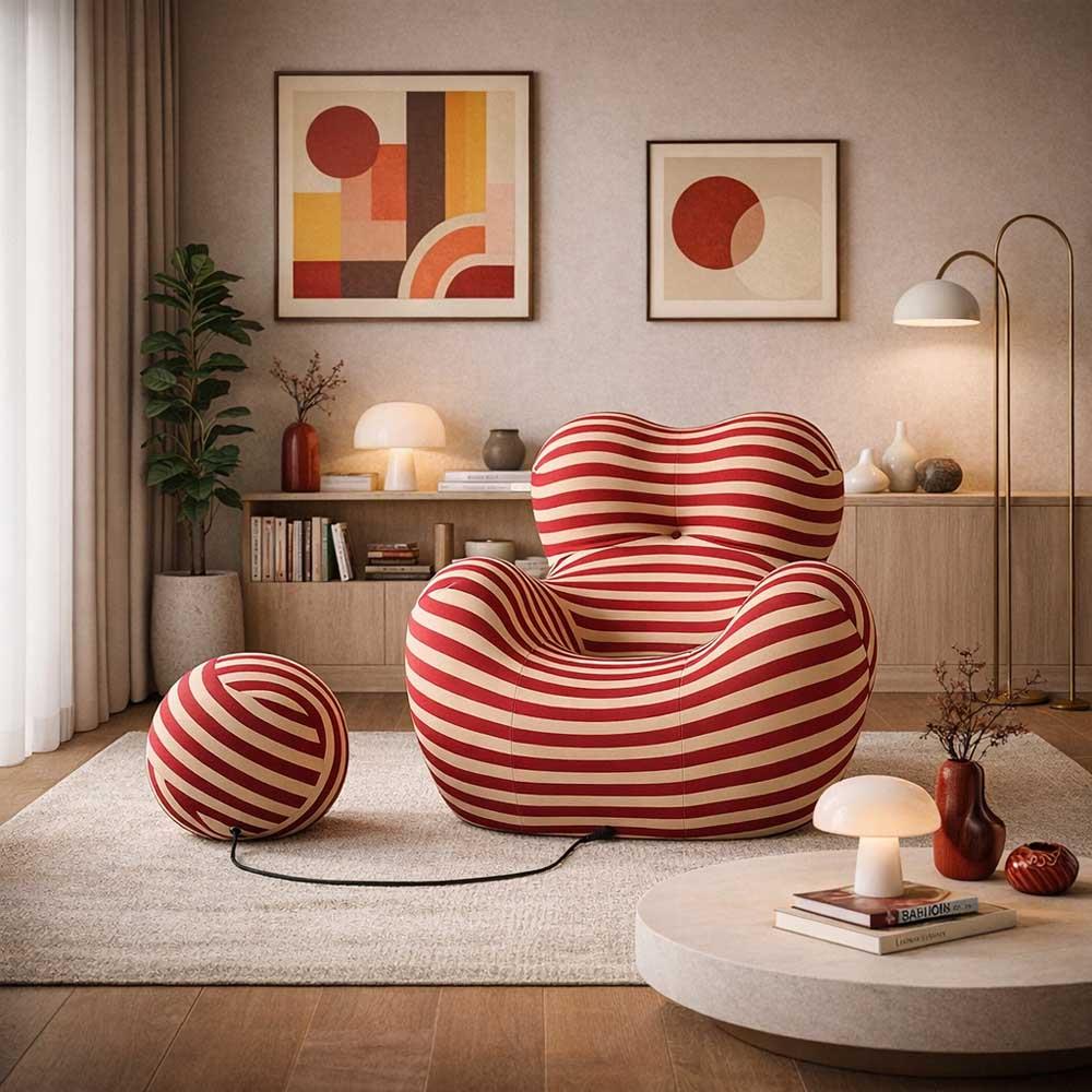 Το υποπόδιο ολοκληρώνει την εμπειρία, προσφέροντας ξεκούραση στα πόδια και καθιστώντας την πολυθρόνα ιδανική επιλογή για σαλόνι, καθιστικό ή lounge χώρους. Ένα εντυπωσιακό κομμάτι που ξεχωρίζει και προσθέτει μοντέρνα αισθητική στο σπίτι σας.