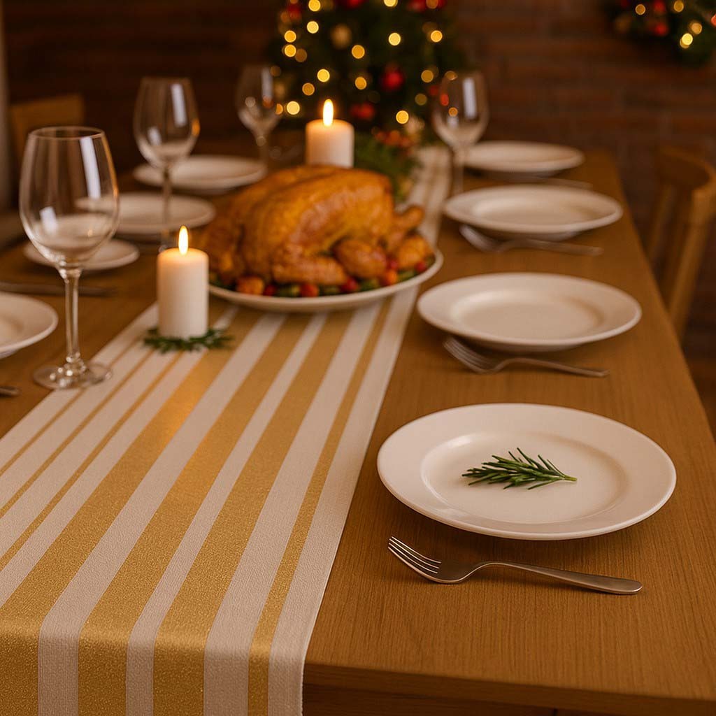 Κομψό διακοσμητικό ύφασμα σε ρολό με πολυτελή foil εκτύπωση σε αποχρώσεις σαμπάνιας. Κατασκευασμένο από πολυεστέρα, προσφέρει λαμπερό αποτέλεσμα και μπορεί να χρησιμοποιηθεί ως τραπεζοδρόμιο, φόντο για στολισμό ή βάση για κεριά και διακοσμητικά. Ιδανικό για τραπέζια, συνθέσεις και festive décor. ✅ Υλικό: Πολυεστέρας