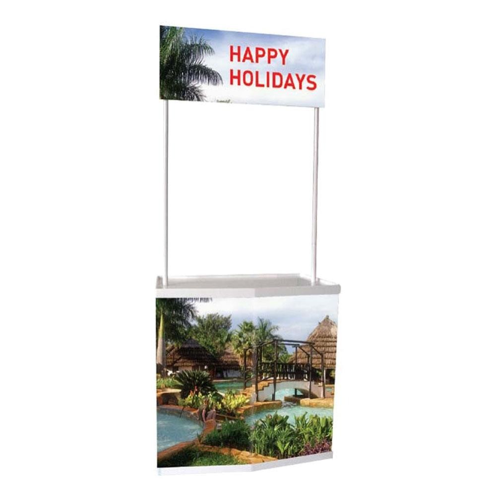Πτυσσόμενος εκθεσιακός πάγκος Promotion ιδανικός για εκθέσεις, παρουσιάσεις, events και προωθητικές ενέργειες. Κατασκευασμένος από λευκό πλαστικό υλικό υψηλής αντοχής, προσφέρει σταθερότητα και επαγγελματική εμφάνιση, ενώ επιτρέπει πλήρη εκτύπωση/επένδυση με γραφικά της επιλογής σας.