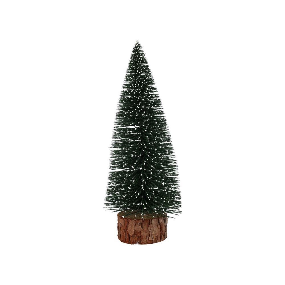 Μικρό χριστουγεννιάτικο δεντράκι με ξύλινη βάση, ιδανικό για να στολίσει τραπέζι, ράφι ή βιτρίνα. Με πράσινα κλαδιά και λευκές άκρες που θυμίζουν χιονισμένο τοπίο, αποτελεί διαχρονικό διακοσμητικό στοιχείο που ταιριάζει σε κάθε γιορτινή σύνθεση.