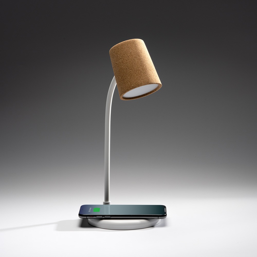 Μοντέρνο επιτραπέζιο φωτιστικό με λεπτομέρειες από φυσικό φελλό και ενσωματωμένο ασύρματο φορτιστή 10W στη βάση. Διαθέτει ασύρματο ηχείο 3W Bluetooth 5.1 και λυχνία LED με τρεις λειτουργίες φωτισμού, που το καθιστούν ιδανικό για γραφεία, υπνοδωμάτια και χώρους χαλάρωσης.