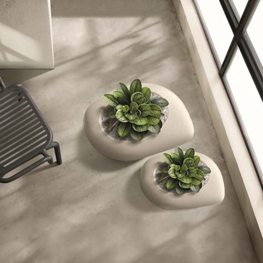 Η γλάστρα - κασπώ Yeke tiny granite ξεχωρίζει για τον οργανικό, ασύμμετρο σχεδιασμό της που θυμίζει φυσική πέτρα. Το χαμηλό της προφίλ την καθιστά ιδανική για επιτραπέζιες συνθέσεις, παρτέρια, βραχόκηπους ή minimal διαμορφώσεις εξωτερικού χώρου.