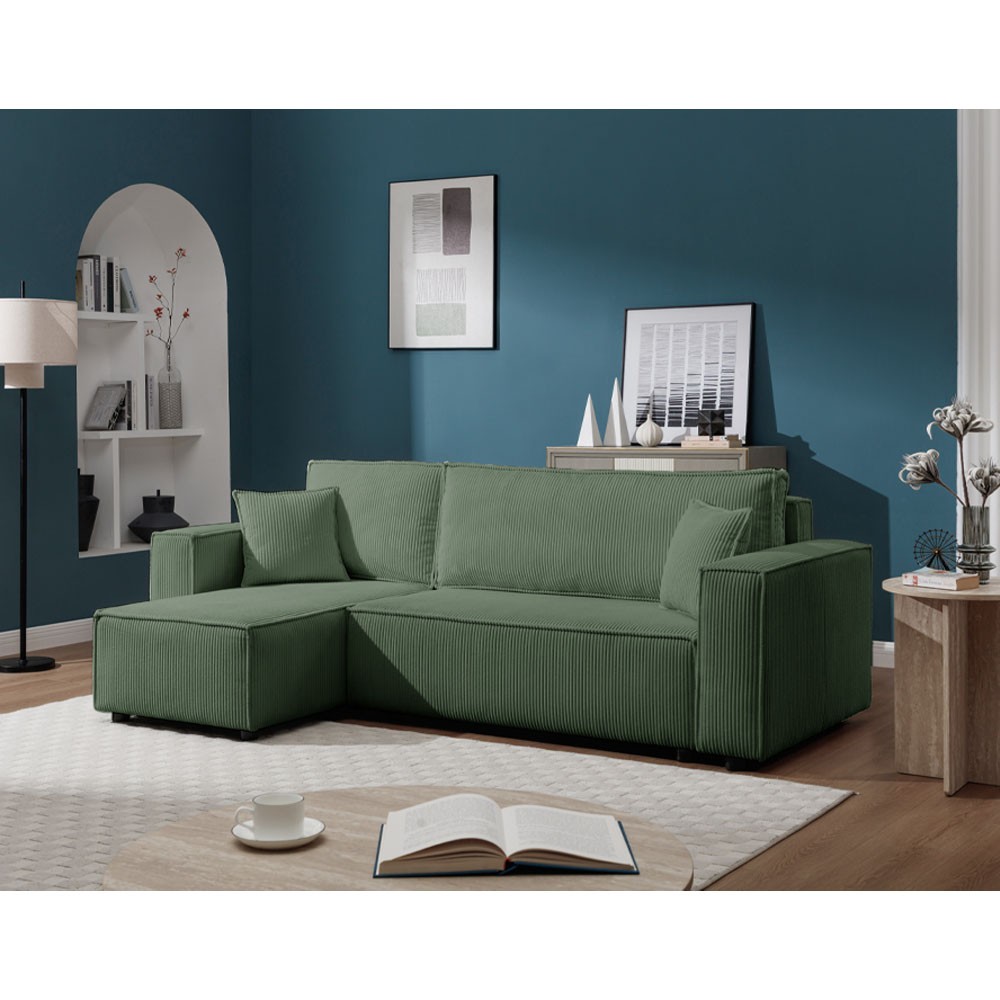 Καναπές - διπλό κρεβάτι Nextdeco γωνιακός με αποθηκευτικό χώρο πράσινο Υ82×240×92-142εκ