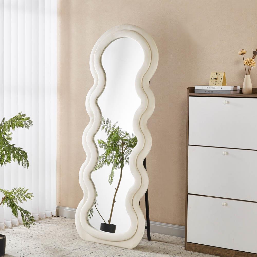 Καθρέφτης ολόσωμος Nextdeco λευκός βελούδινο πλαίσιο 160x60εκ. κυματιστός