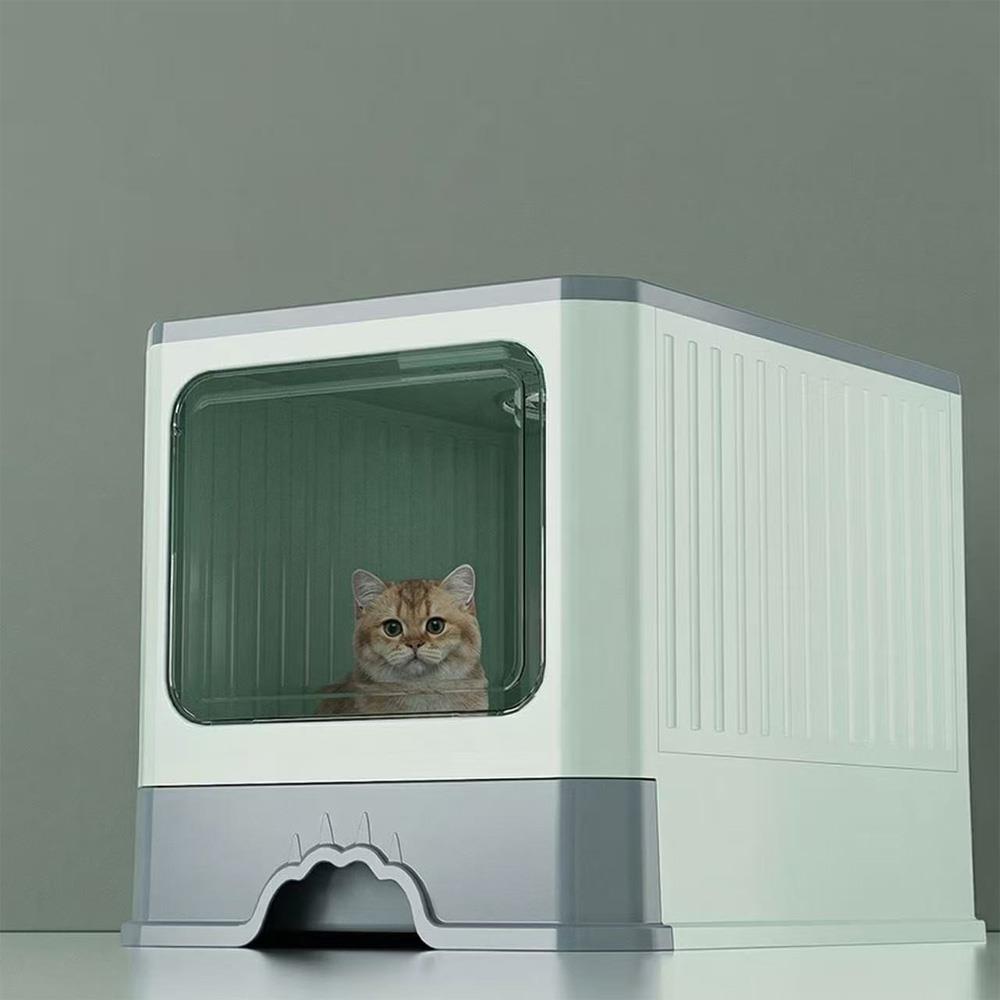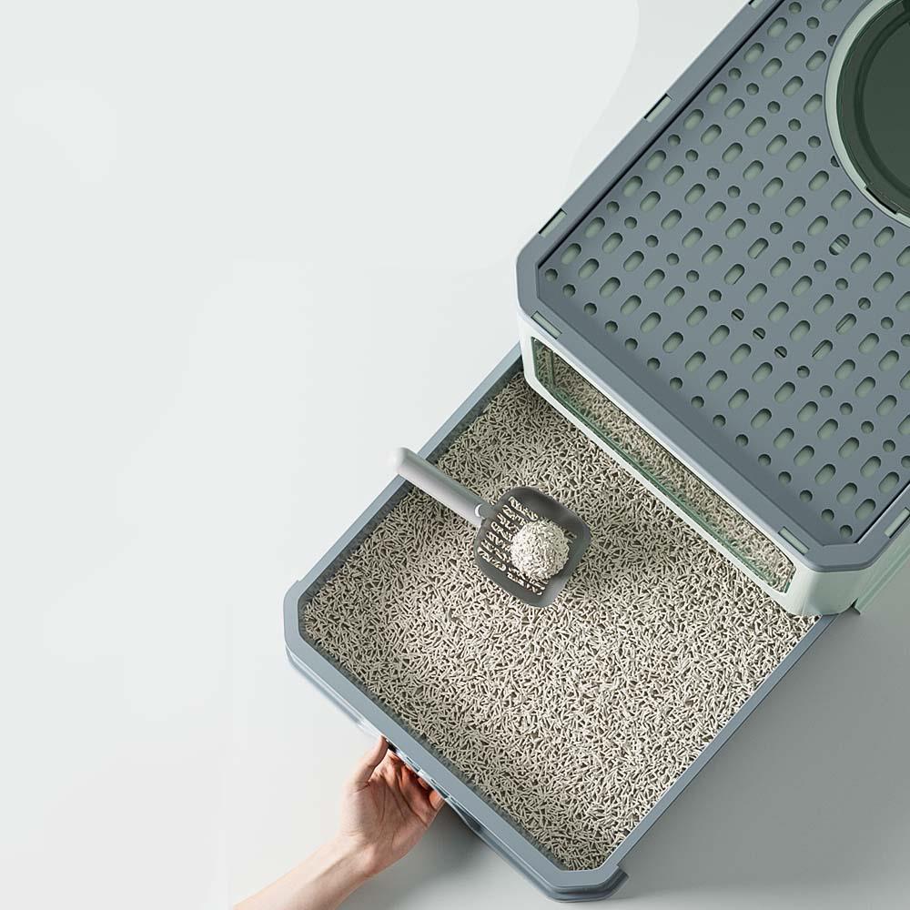 Η κλειστή τουαλέτα γάτας με συρταρωτό δοχείο άμμου προσφέρει άνεση, καθαριότητα και εύκολη συντήρηση. Η μπροστινή πόρτα επιτρέπει ομαλή είσοδο–έξοδο, ενώ η διάτρητη επάνω επιφάνεια παγιδεύει την άμμο ώστε να μη μεταφέρεται στον χώρο. Το συρταρωτό δοχείο καθαρίζει γρήγορα με μία κίνηση, ενώ η κατασκευή της είναι στιβαρή και ιδανική για μικρές και μεσαίες γάτες.