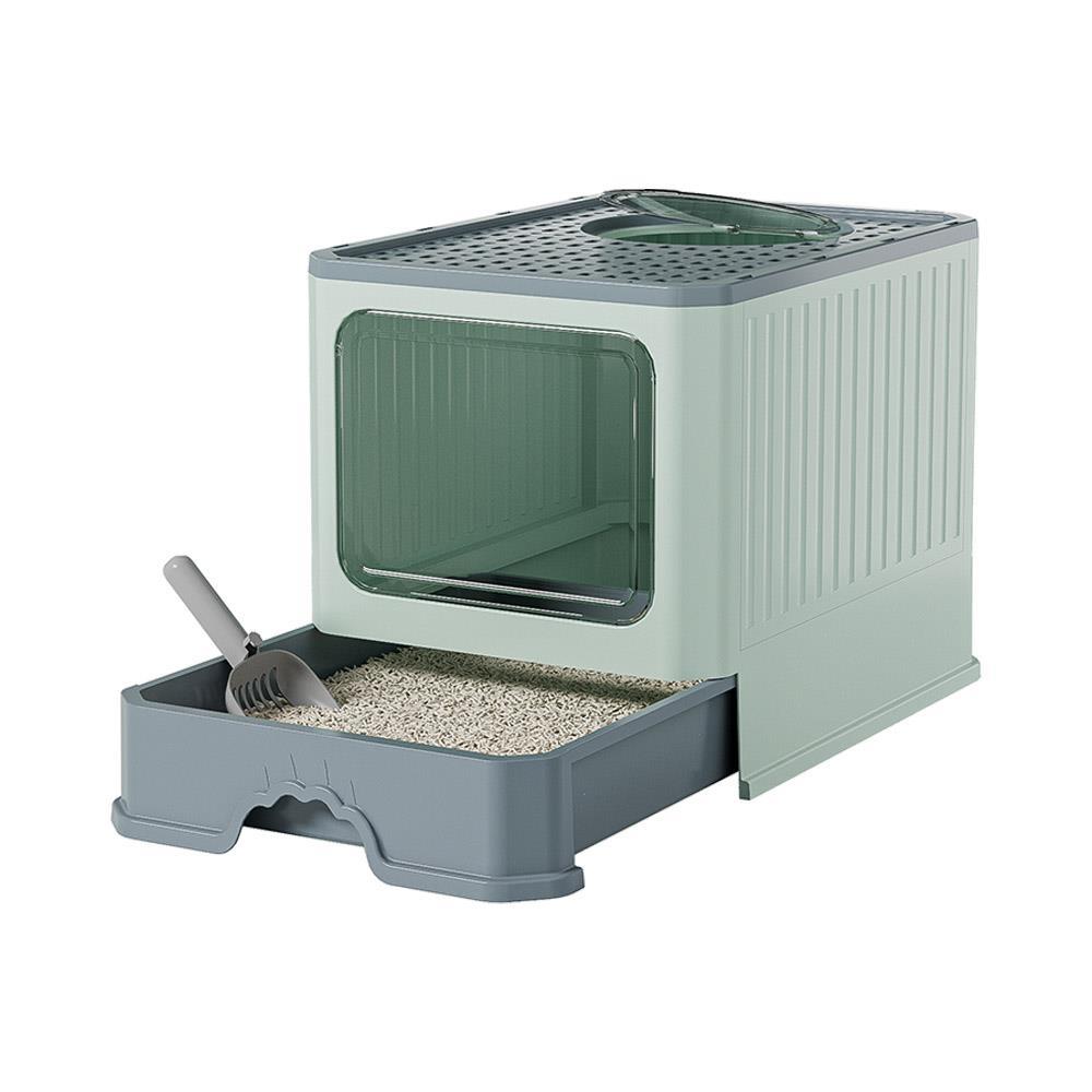 Κλειστή τουαλέτα γάτας με συρτάρι πράσινη 50×40×40εκ.