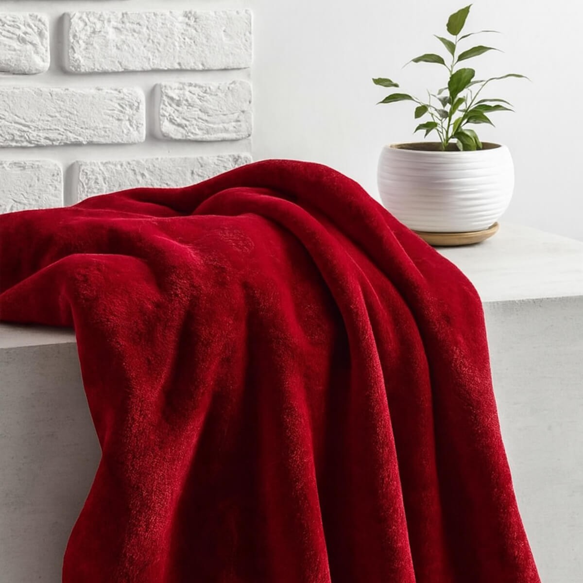 Κουβέρτα υπέρδιπλη κόκκινη βελουτέ από 100% polyester 220x240εκ.