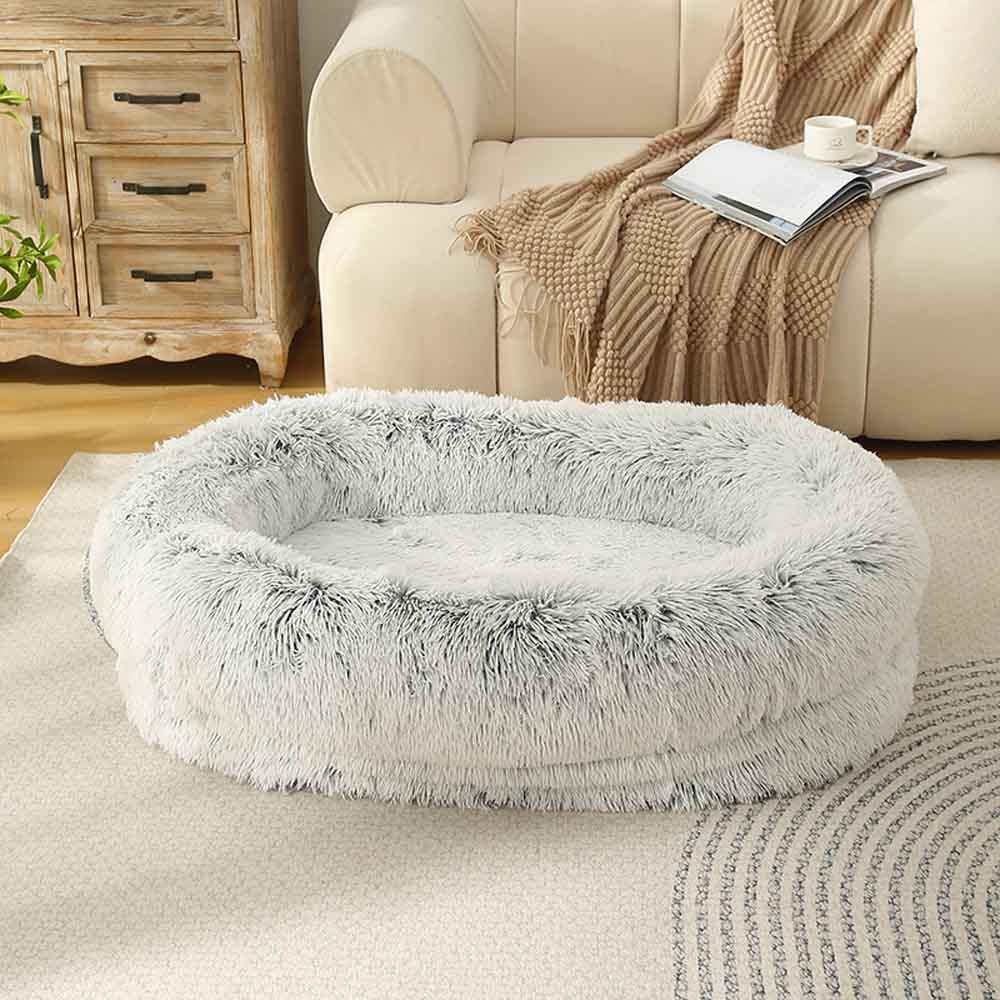Αναπαυτικό κρεβάτι κατοικιδίου σε γκρι απόχρωση με fleece 4 cm, αδιάβροχη εσωτερική επένδυση και αντιολισθητική βάση. Η γέμιση από sponge προσφέρει σωστή στήριξη, ενώ το υψωμένο σχήμα του βοηθά το κατοικίδιο να νιώθει ασφάλεια. Ιδανικό για μεσαίου μεγέθους σκύλους και γάτες. Διαστάσεις προϊόντος Υ18×75×55εκ.
