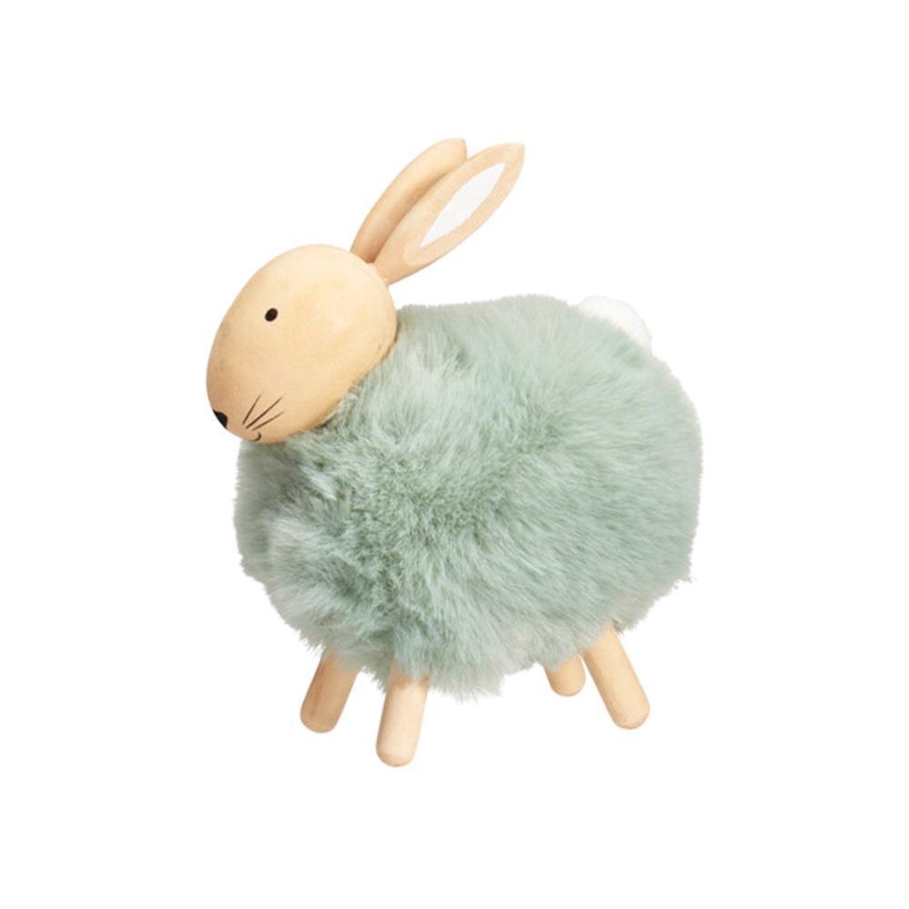 Λαγουδάκι διακοσμητικό από συνθετική γούνα και ξύλο πράσινο 10×16,5×13εκ.