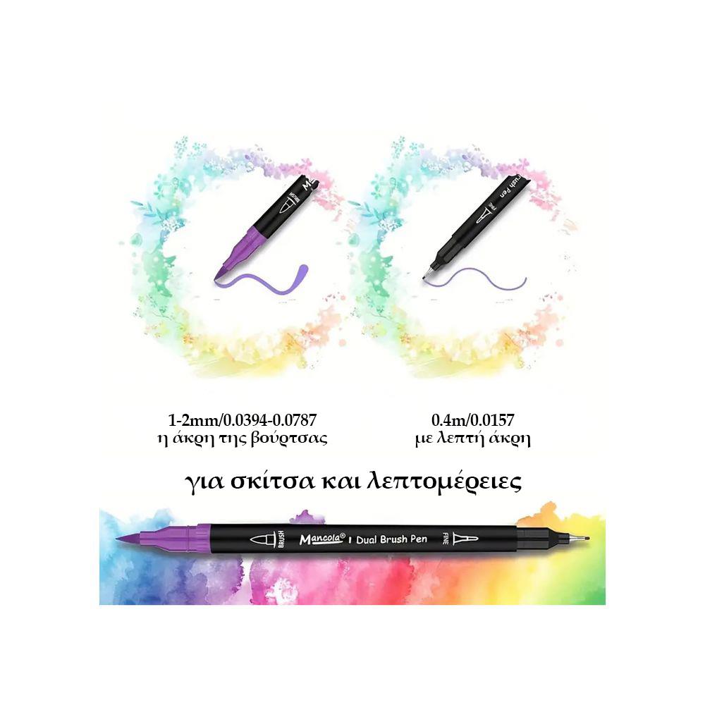 Μαρκαδόροι ακουαρέλας διπλής μύτης σετ 100τμχ.