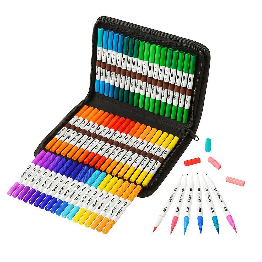 Πλήρες σετ 60 επαγγελματικών μαρκαδόρων ακουαρέλας με διπλή μύτη, brush tip για δυναμικές πινελιές και fine tip για λεπτομέρειες. Με κομψό μαύρο σώμα και πλούσια, ζωηρά χρώματα, είναι ιδανικοί για εικονογράφηση, σχεδίαση, lettering και κάθε είδους καλλιτεχνική δημιουργία. Ιδανικό εργαλείο για επαγγελματίες και λάτρεις της τέχνης.