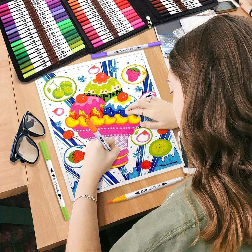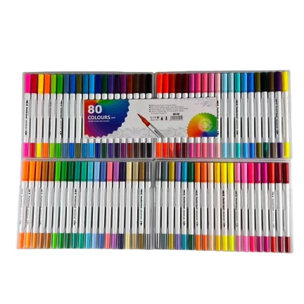 Σετ 80 μαρκαδόρων με βάση το νερό. Έχουν διπλή μύτη: εύκαμπτη brush για δημιουργική γραφή και λεπτή fine για ακριβείς λεπτομέρειες. Ιδανικοί για σχέδιο, καλλιγραφία, ζωγραφική, journaling και DIY δημιουργίες. Με πλούσια χρώματα για κάθε καλλιτεχνική έμπνευση!