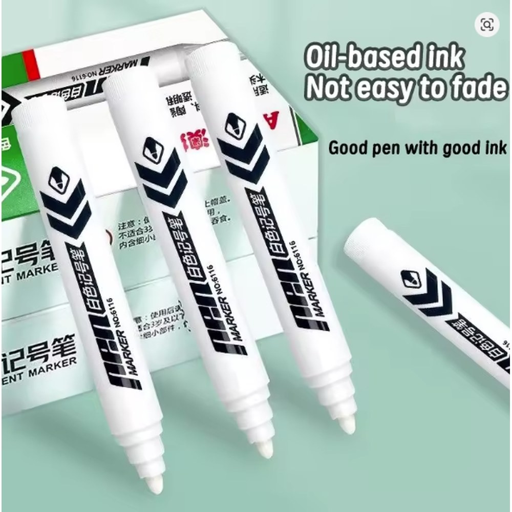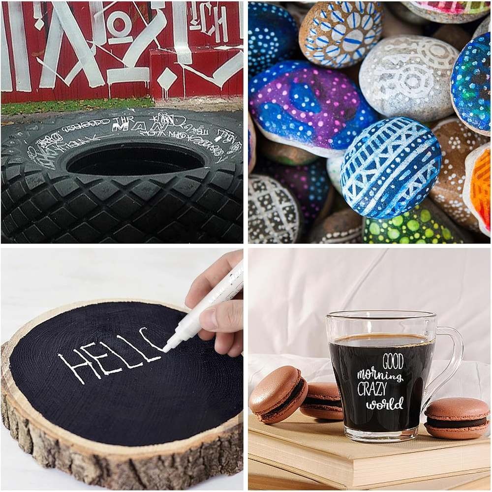 Σετ 10 λευκών ακρυλικών μαρκαδόρων με υψηλή καλυπτικότητα. Ιδανικοί για χρήση σε πέτρα, ξύλο, ύφασμα, γυαλί και DIY δημιουργίες.