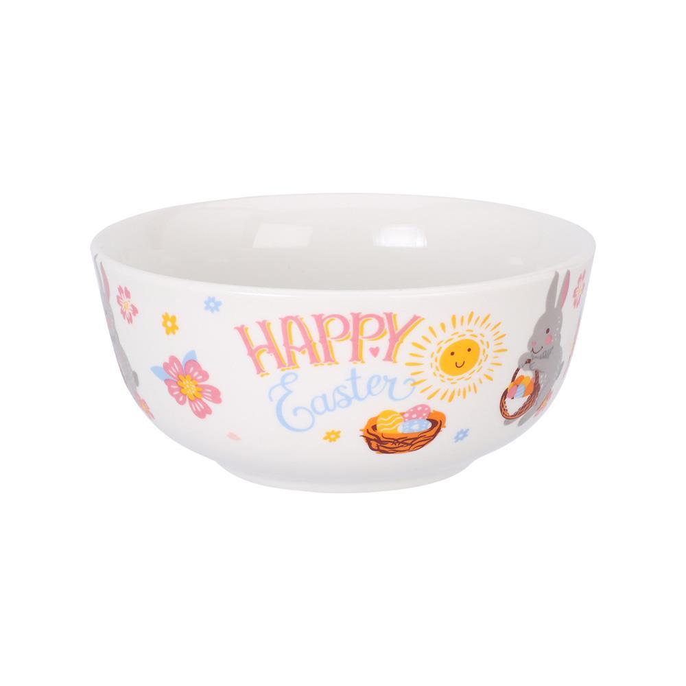 Πασχαλινό μπολ από πορσελάνη, ιδανικό για σερβίρισμα δημητριακών, σνακ, γλυκών ή άλλων τροφίμων κατά την πασχαλινή περίοδο. Διαθέτει πασχαλινό σχέδιο και μπορεί να χρησιμοποιηθεί τόσο στην καθημερινή χρήση όσο και ως εποχιακό είδος τραπεζιού ή δώρο.