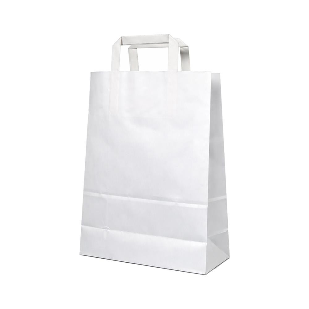 Next χάρτινη τσάντα άσπρη με πλακέ χερούλι Υ35x26x12εκ. Δυνατότητα εκτύπωσης
