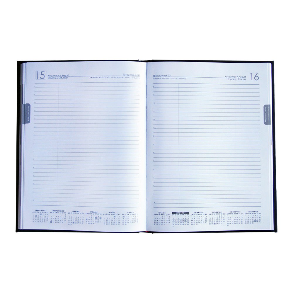 Με σελιδοδείκτη κορδέλα και ειδική εκτύπωση στην άκρη των φύλλων, για να ξεχωρίζουν οι μήνες.