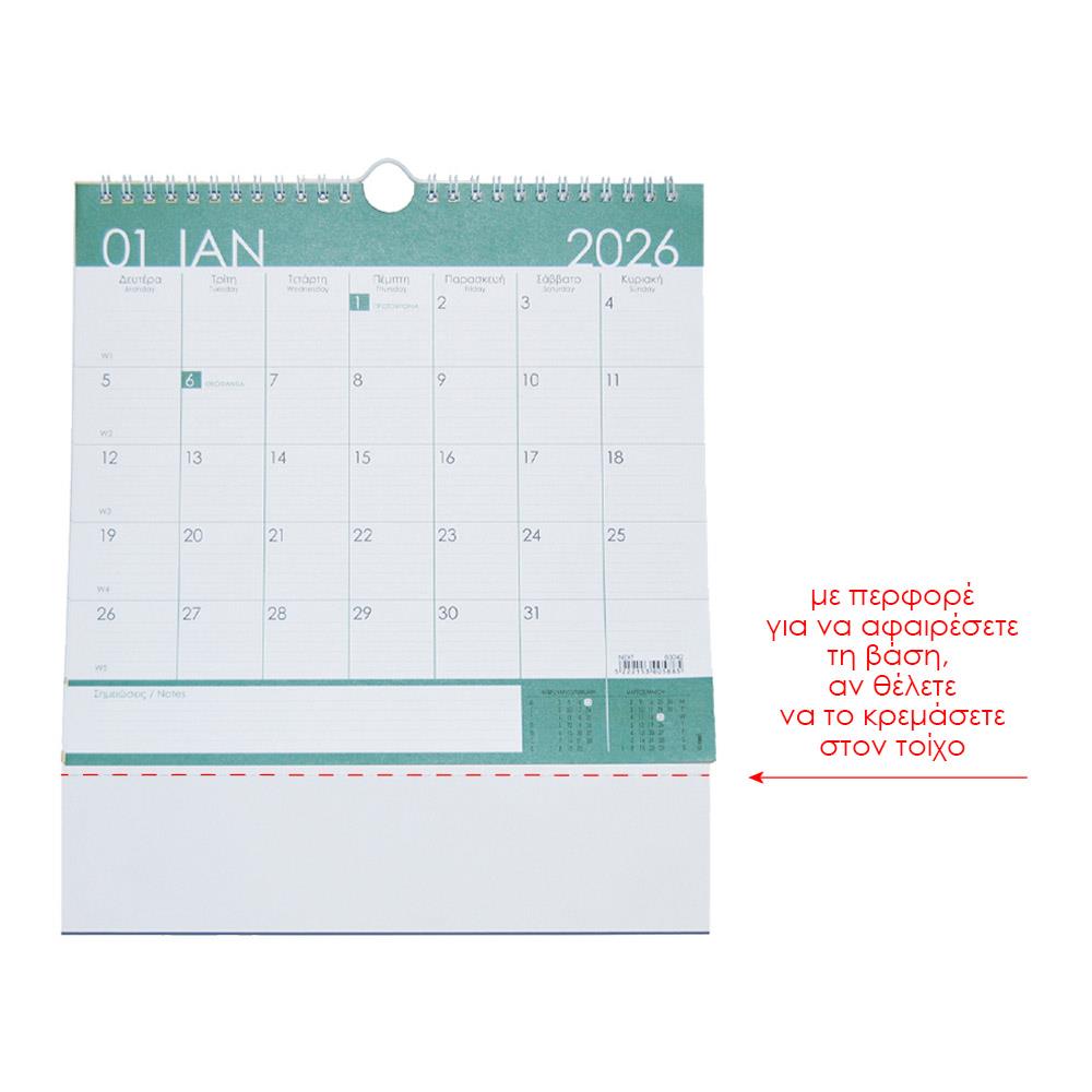 Next ημερολόγιο 2026, ύψος 23x25εκ., 12 φύλλα, 3:1, επιτοίχιο & γραφείου