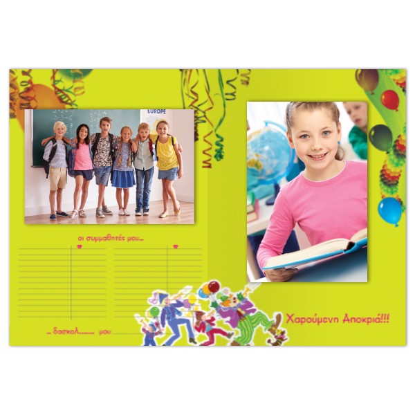 Σχολικό ενθύμιο δίφυλλο Αποκριάτικο