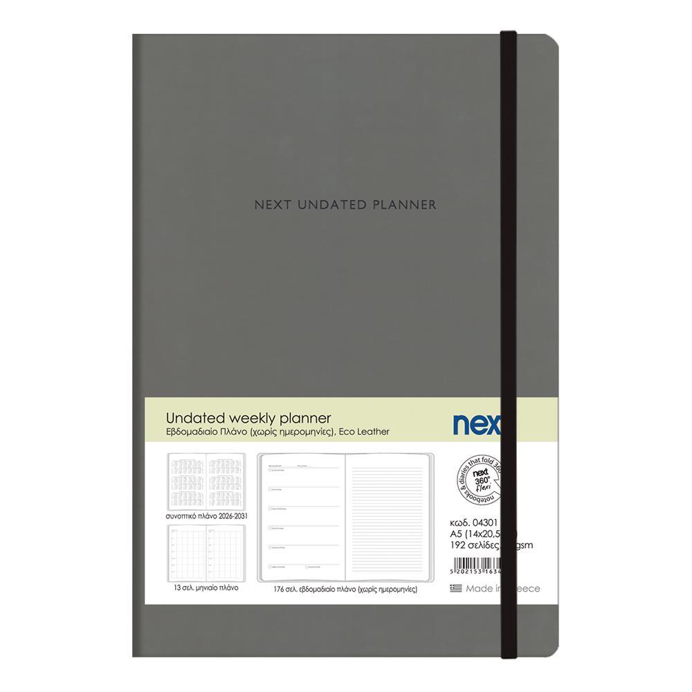 Next Undated weekly planner premium flexi γκρι 14x20,5 εκ.