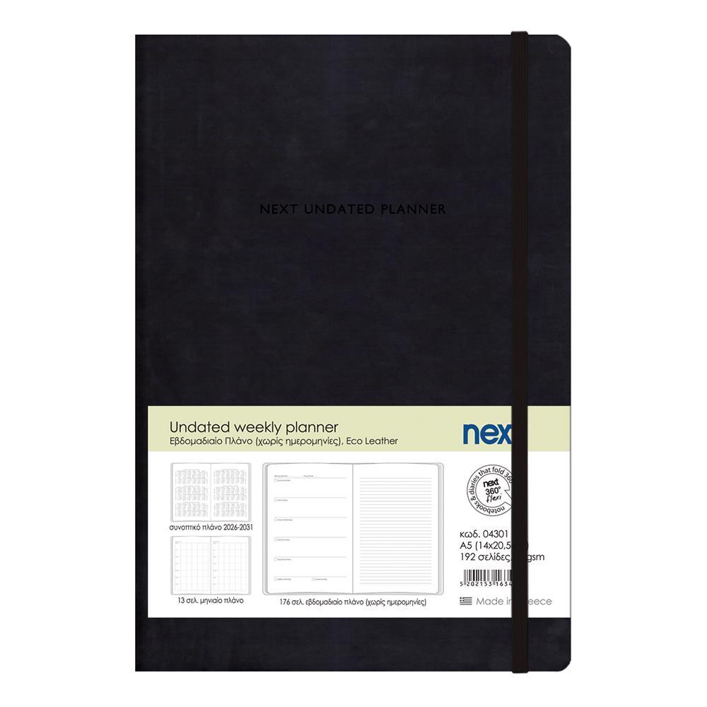 Next Undated weekly planner premium flexi μαύρο 14x20,5 εκ.