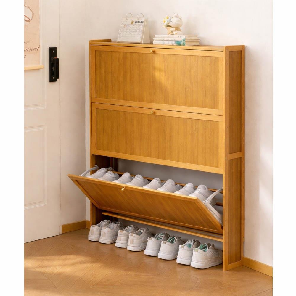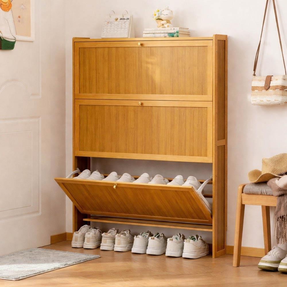 Η παπουτσοθήκη Nextdeco με 3 πόρτες από φυσικό μπαμπού προσφέρει πρακτική και κομψή αποθήκευση παπουτσιών για κάθε είσοδο ή διάδρομο. Με φάρδος 70εκ και βάθος μόλις 17εκ, προσφέρει περισσότερη χωρητικότητα χωρίς να καταλαμβάνει πολύτιμο χώρο. Οι τρεις ανακλινόμενες θήκες κρατούν τα παπούτσια σου τακτοποιημένα και προστατευμένα από τη σκόνη. Ο μίνιμαλ σχεδιασμός της ταιριάζει σε κάθε μοντέρνο ή φυσικό εσωτερικό.