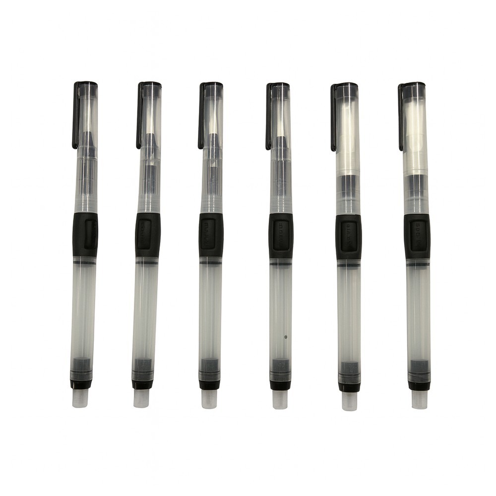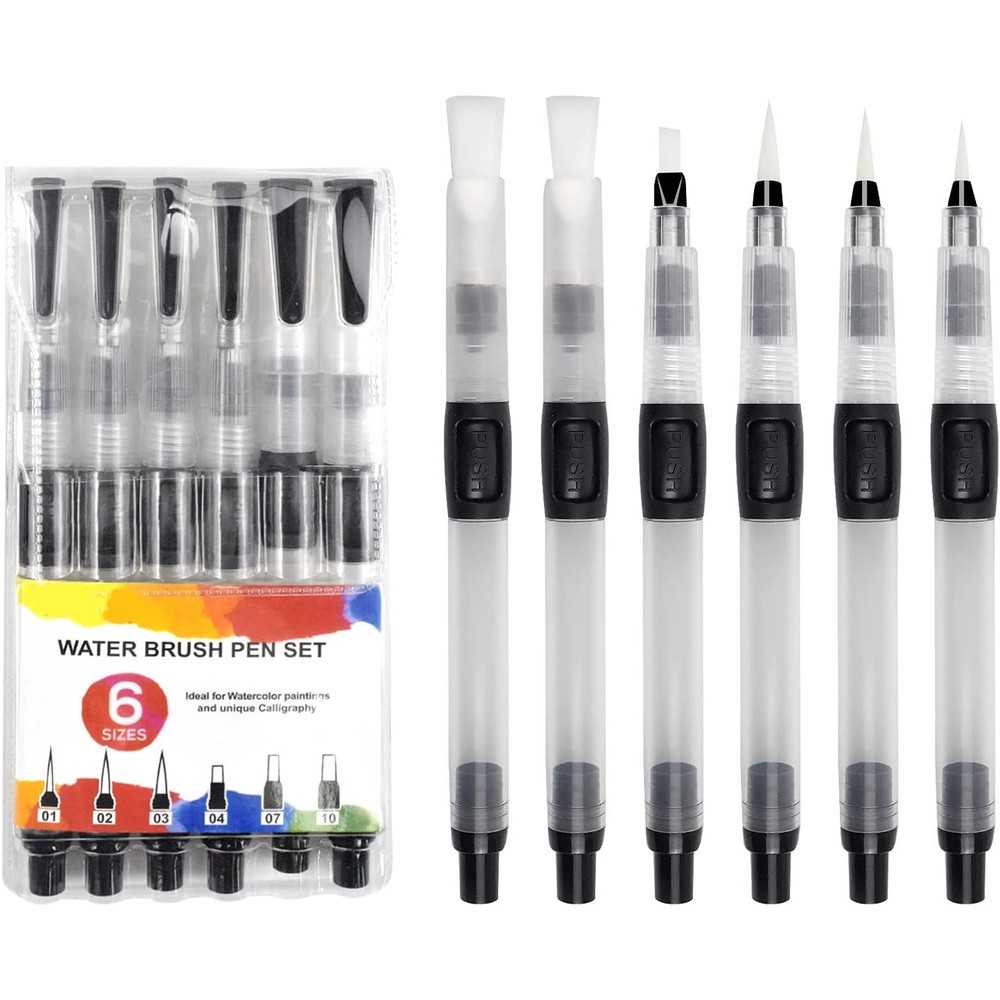 Σετ 6 πινέλα με δεξαμενή νερού με διαφορετικά σχήματα μύτης για απόλυτο έλεγχο στη ζωγραφική. Ιδανικά για ακουαρέλες, lettering, καλλιγραφία και δημιουργικά DIY projects.