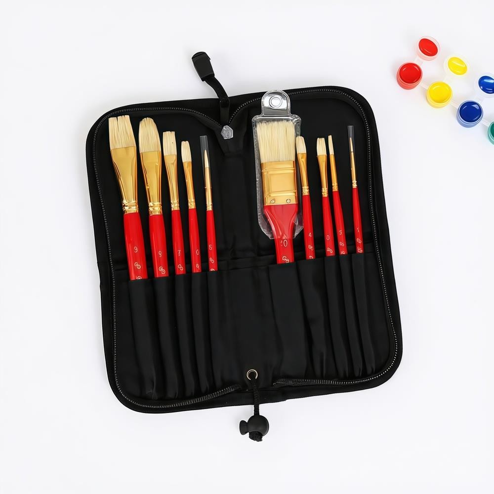 Πινέλα ζωγραφικής μακριά λαβή σετ 10 τεμαχίων σε θήκη