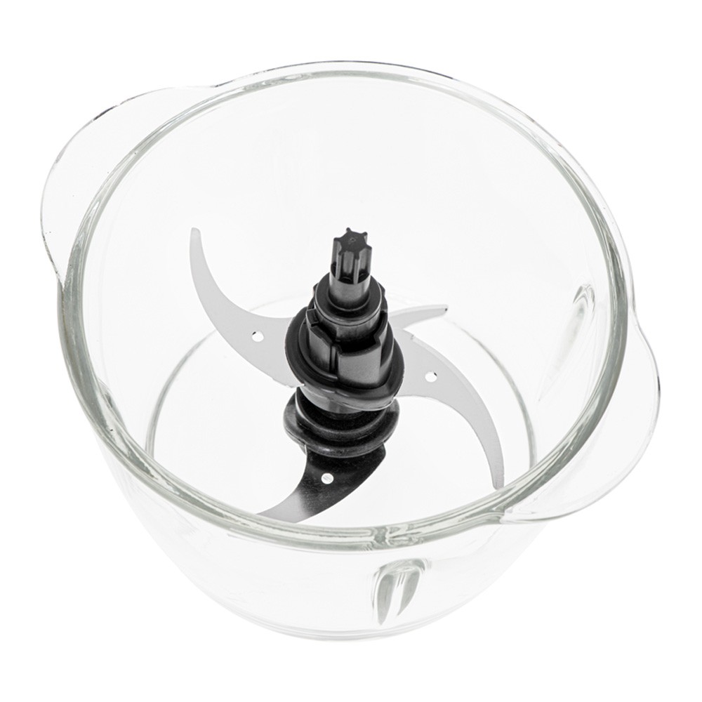 Διαθέτει γυάλινο μπολ 1,2 λίτρων ανθεκτικό και εύκολο στον καθαρισμό, ενώ λειτουργεί σε κανονική ή παλμική λειτουργία ανάλογα με τις ανάγκες. Οι διπλές λεπίδες σε δύο επίπεδα και οι δύο ταχύτητες εξασφαλίζουν αποτελεσματικό και γρήγορο αποτέλεσμα.