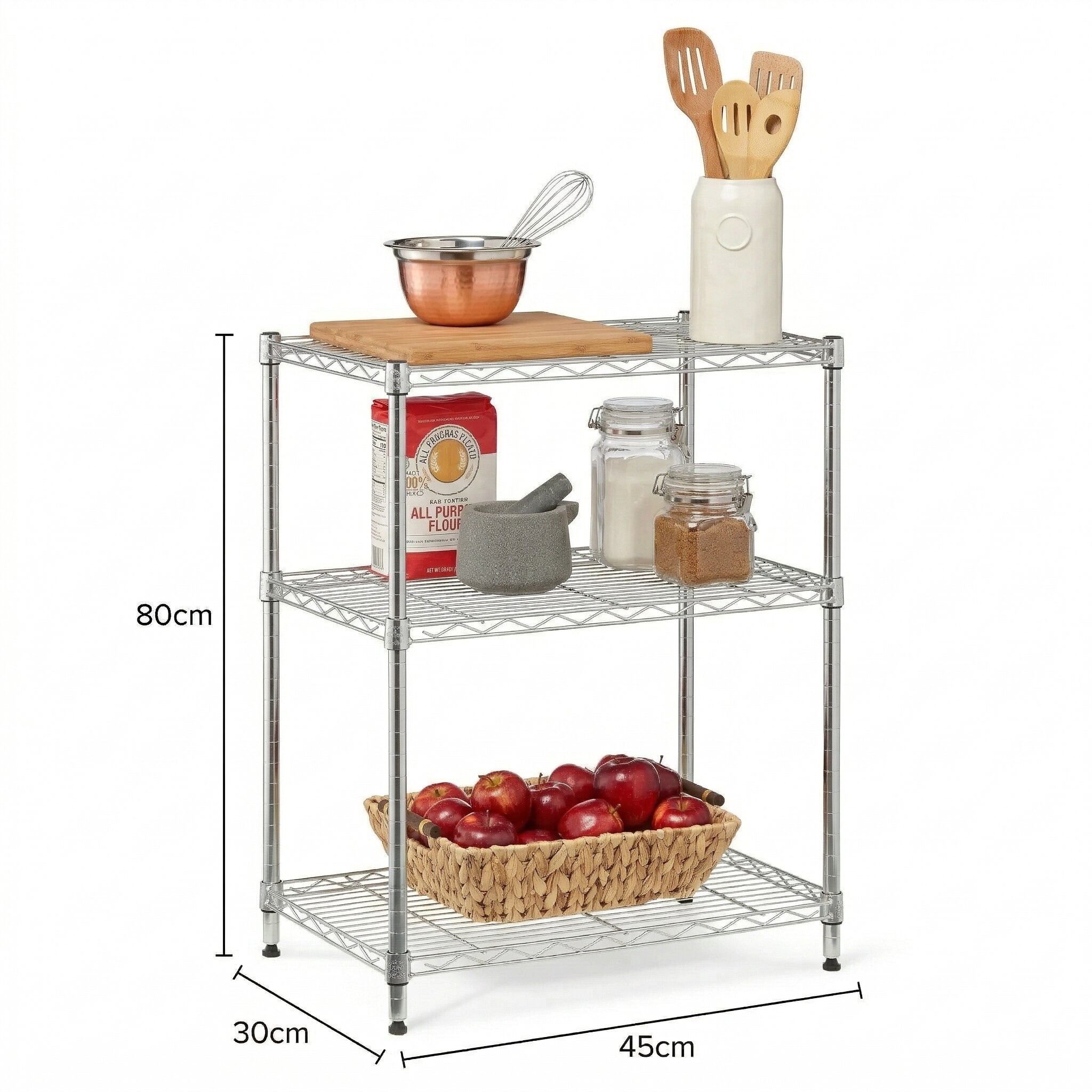 Ιδανική για ηλεκτρικές συσκευές, κουζινικά, είδη γραφείου, δοχεία, τρόφιμα ή διακοσμητικά αντικείμενα. Η ανοικτή κατασκευή επιτρέπει εύκολη πρόσβαση και άψογη ορατότητα των αντικειμένων. ✅Διαστάσεις προϊόντος: Υ80×45×30εκ.