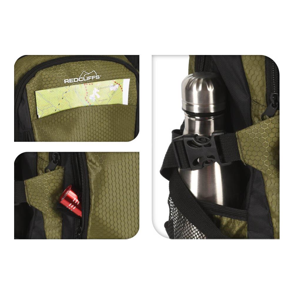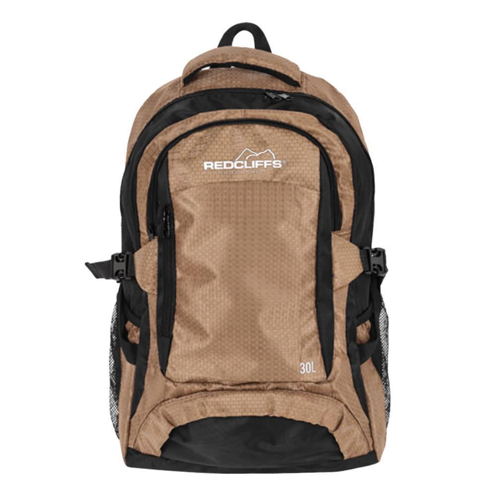 Σακίδιο πεζοπορίας χωρητικότητας 30 λίτρων, κατασκευασμένο από ανθεκτικό πολυεστέρα ripstop 420D, κατάλληλο για εξορμήσεις, πεζοπορία και καθημερινή χρήση. Διαθέτει κεντρική θήκη με διπλό φερμουάρ και εσωτερική ανοιχτή τσέπη, δύο μπροστινές τσέπες με φερμουάρ, μία μπροστινή ανοιχτή τσέπη με κλείσιμο velcro, δύο πλαϊνές τσέπες από δίχτυ και μία τσέπη στο κάτω μέρος. Η ενισχυμένη πλάτη και οι ρυθμιζόμενοι, επενδυμένοι ιμάντες ώμου προσφέρουν σταθερή εφαρμογή και άνετη μεταφορά, ενώ το επάνω χερούλι διευκολύνει τη χρήση.