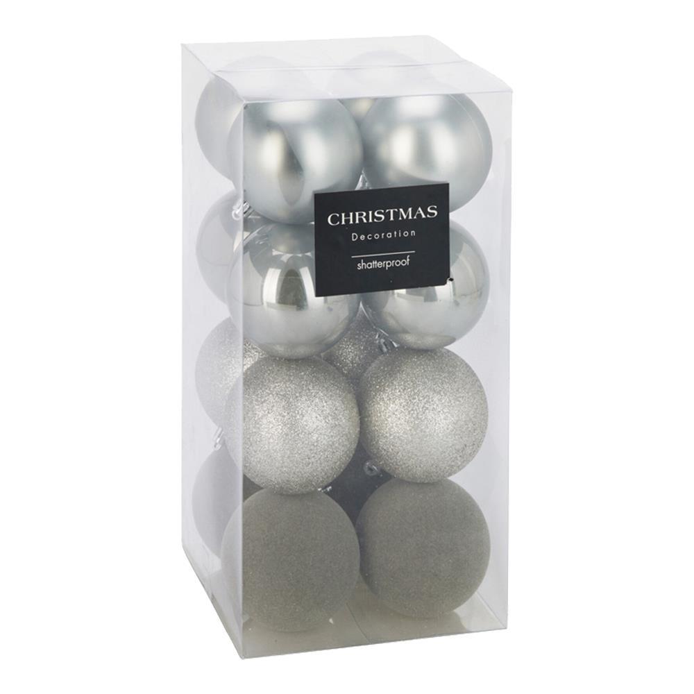 Σετ 16 χριστουγεννιάτικες μπάλες ασημί Ø8εκ.