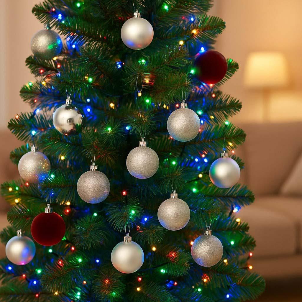 Σετ 16 χριστουγεννιάτικες μπάλες σε ασημί απόχρωση με τέσσερα διαφορετικά φινιρίσματα: ματ, περλέ, γκλίτερ και βελούδο. Με διάμετρο 8 εκ., προσφέρουν ποικιλία υφών και λάμψης που αναδεικνύει το χριστουγεννιάτικο δέντρο. Κατασκευασμένες από ανθεκτικό πολυπροπυλένιο, συνδυάζουν κομψότητα και αντοχή.