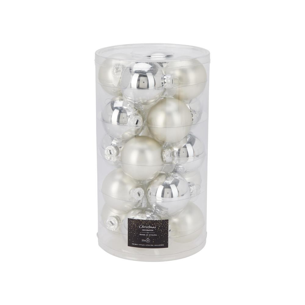 Σετ 20 χριστουγεννιάτικες γυάλινες μπάλες ασημί Ø6εκ.
