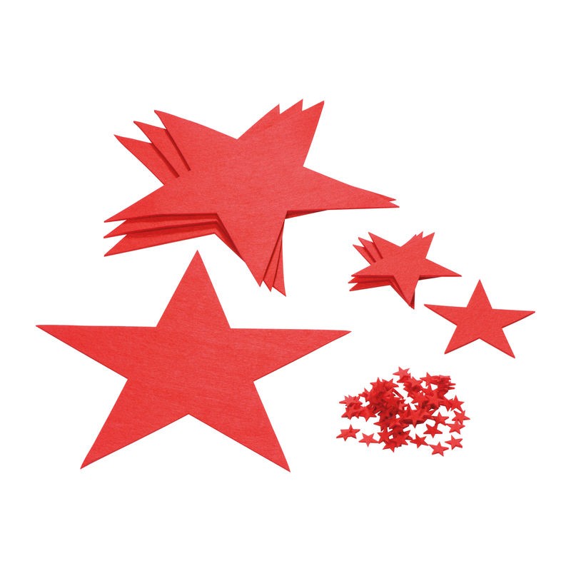 Σετ διακόσμησης από τσόχα που περιλαμβάνει 4 μεγάλα, 4 μεσαία και 74 μικρά αστέρια, ιδανικά για τη δημιουργία ενός καλαίσθητου και γιορτινού τραπεζιού. Μπορούν να χρησιμοποιηθούν ως σουβέρ, διακοσμητικά για πιάτα ή στολίδια για κάθε γωνιά του χώρου. Κατάλληλα για επαναχρησιμοποίηση και εύκολα στον καθαρισμό. Διαστάσεις:30x30εκ.