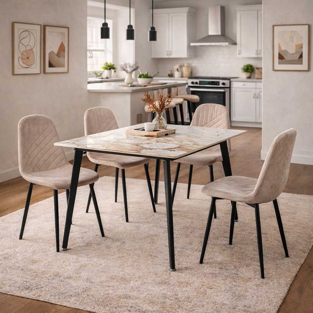 Σετ τραπεζαρίας Nextdeco κεραμική με βελούδινες καρέκλες 5 τμχ