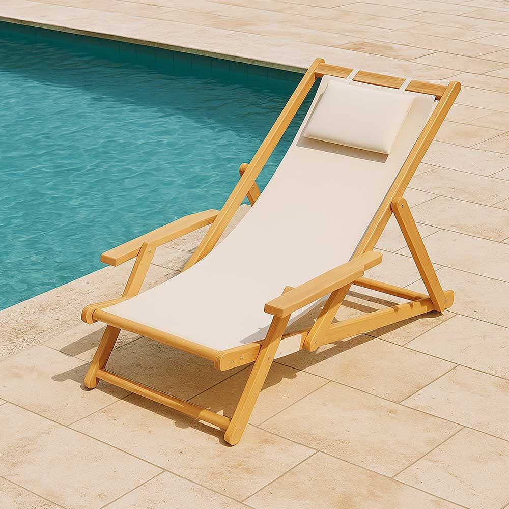 Απόλαυσε την απόλυτη άνεση με την σεζλόνγκ Nextdeco από φυσικό μπαμπού, ιδανική για ξεκούραση στον εσωτερικό ή ημιυπαίθριο χώρο. Διαθέτει υφασμάτινη επένδυση και ενσωματωμένο μαξιλάρι για υποστήριξη του αυχένα, ενώ η πτυσσόμενη κατασκευή της επιτρέπει εύκολη αποθήκευση όταν δεν χρησιμοποιείται. Η πλάτη ρυθμίζεται σε πολλαπλές θέσεις για να προσαρμόζεται στις ανάγκες σου. Ο συνδυασμός του φυσικού ξύλου και του υφάσματος προσδίδει γήινη, μοντέρνα αίσθηση στον χώρο σου.