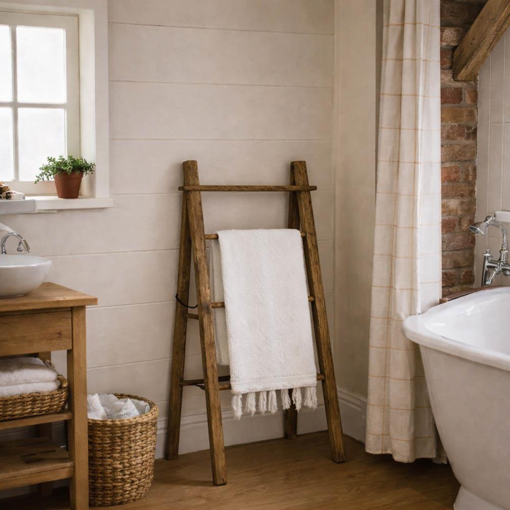 Σχεδιασμένη για χρήση ως κρεμάστρα για πετσέτες στο μπάνιο, αλλά και ως διακοσμητικό στοιχείο στο σαλόνι, την είσοδο ή το υπνοδωμάτιο. Κατασκευασμένη από ανακυκλωμένο ξύλο teak, ο διπλός σχεδιασμός της προσφέρει επιπλέον σκαλοπάτια για να κρεμάτε φρέσκες ή χρησιμοποιημένες πετσέτες, εξασφαλίζοντας εύκολη πρόσβαση και στέγνωμα. Ανθεκτική στις καιρικές συνθήκες, είναι κατάλληλη και για εξωτερικούς χώρους. ✅ Χειροποίητο προϊόν – Κάθε κομμάτι είναι μοναδικό και μπορεί να διαφέρει ελαφρώς ως προς την απόχρωση και τα νερά του ξύλου