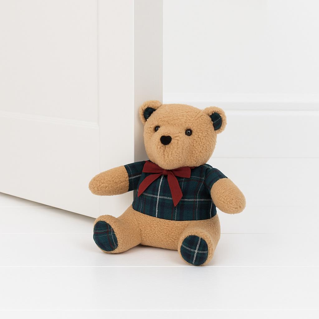 Στοπ πόρτας χριστουγεννιάτικο αρκουδάκι καρό πράσινο 24x16x24εκ.
