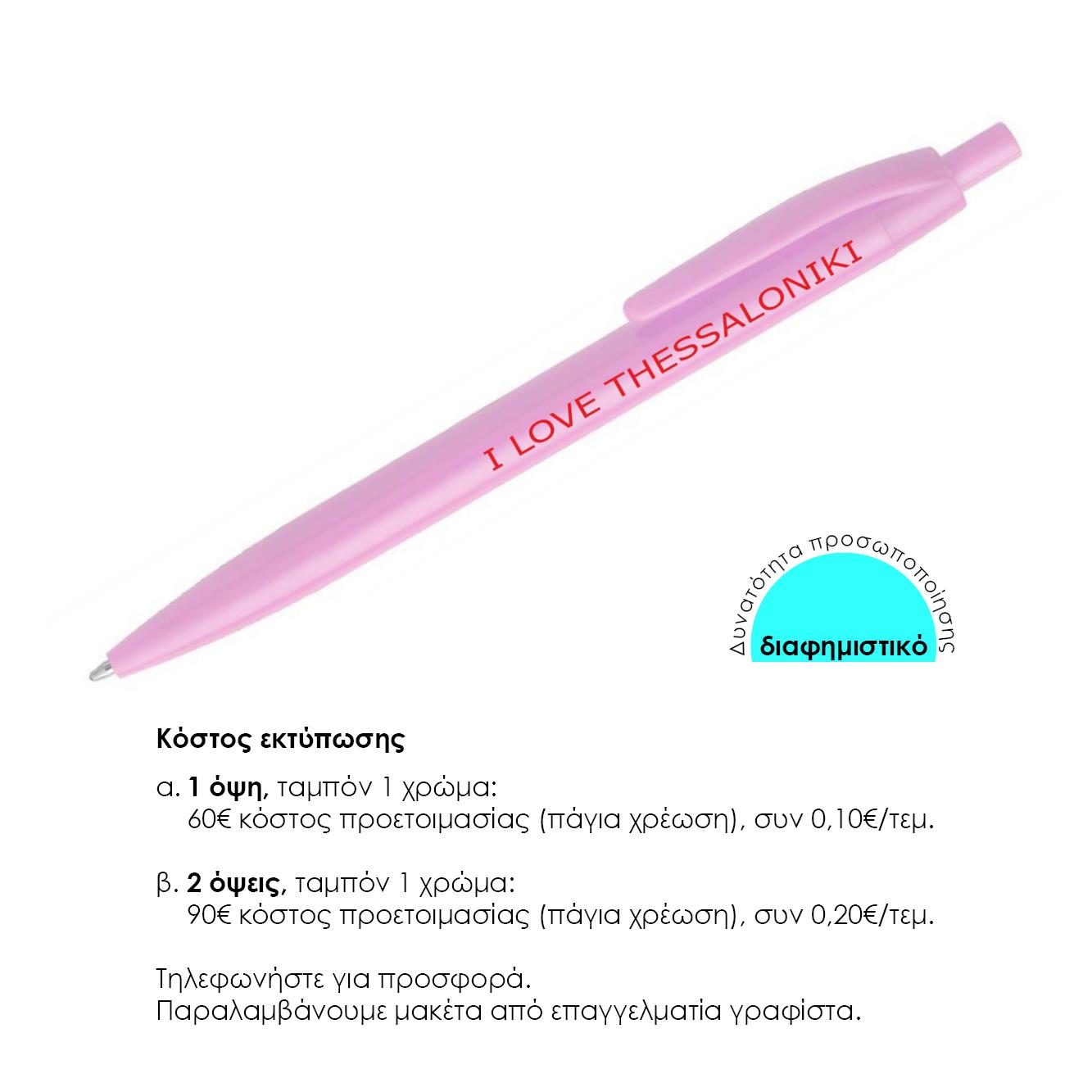Στυλό από ABS ροζ με κλιπ Υ13,8xØ1εκ. Δυνατότητα εκτύπωσης