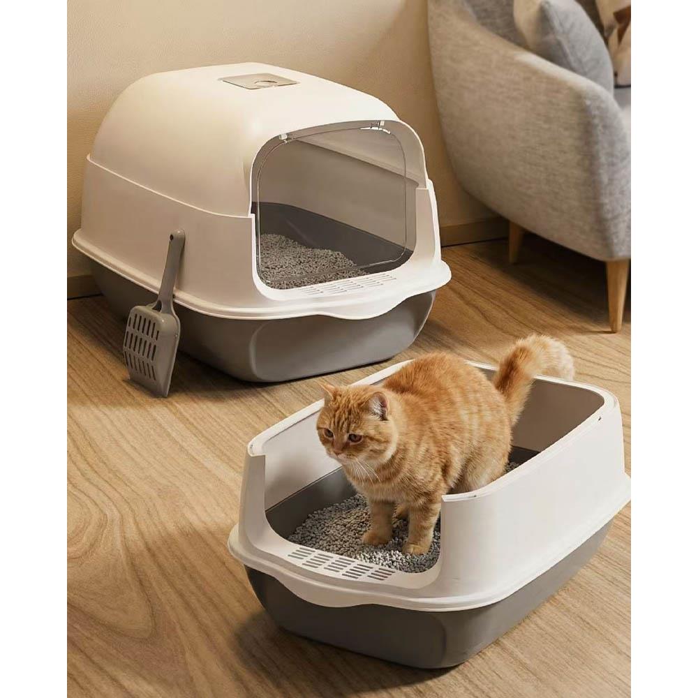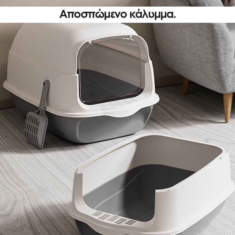 Η κλειστή τουαλέτα γάτας σε γκρι χρώμα προσφέρει ιδανική υγιεινή και καθαριότητα για τον χώρο σας, περιορίζοντας οσμές και διασπορά άμμου. Διαθέτει καπάκι και διάφανο πορτάκι για μεγαλύτερη άνεση και αίσθηση ιδιωτικότητας στη γάτα, ενώ ο εσωτερικός σχεδιασμός βοηθά στη διατήρηση της άμμου μέσα στον κάδο. Περιλαμβάνει φτυαράκι καθαρισμού και φίλτρο απορρόφησης οσμών. Κατάλληλη για όλα τα μεγέθη γάτας και ιδανική για σπίτι ή επαγγελματικούς χώρους (pet grooming, pet hotel, καταστήματα). Διαστάσεις προϊόντος: 50×35×35εκ.