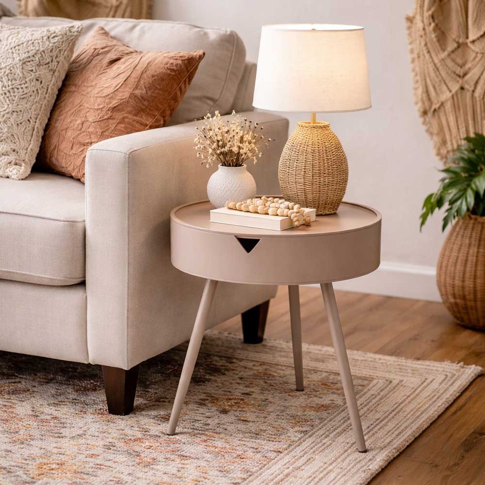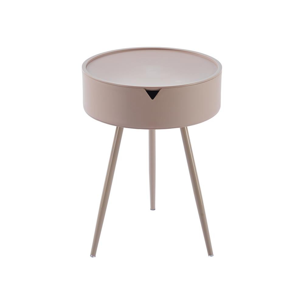 Τραπεζάκι σαλονιού με πλαστική επιφάνεια και μεταλλικά πόδια με επίστρωση πούδρας. Διαθέτει αποθηκευτικό χώρο κάτω από το καπάκι, ιδανικό για μικροαντικείμενα ή περιοδικά. Συνδυάζει λειτουργικότητα και μοντέρνα αισθητική, κατάλληλο για σαλόνι, υπνοδωμάτιο ή επαγγελματικούς χώρους. Διαστάσεις προϊόντος: Ø40,5×Υ54 εκ., συσκευασίας: 41,5×41,5×16 εκ. Βάρος: 2,65 κιλά.